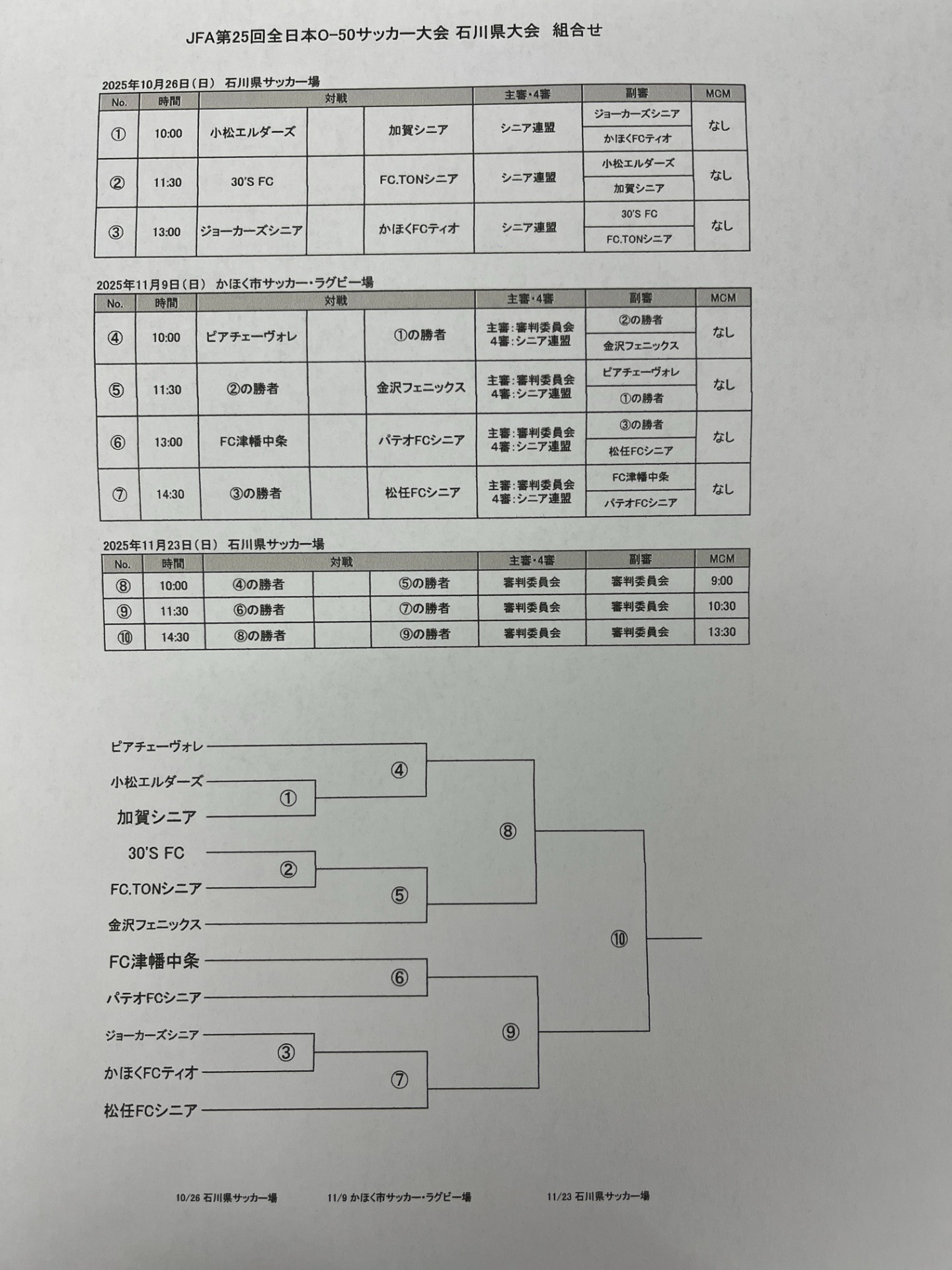 初戦(準々決勝)は10/27 根上サッカー場にて14:30~